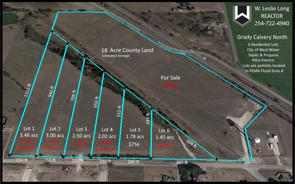 City of West Water, On-Site Septic Required, Propane Gas, And Hilco Electric. Lots are partially located in FEMA Flood Zone A.