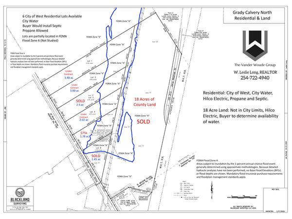 18 acres available with frontage on Grady Calvery and Jerry Mashek Drive. The land is not in the city limits, but could be annexed with land owner & city approval.